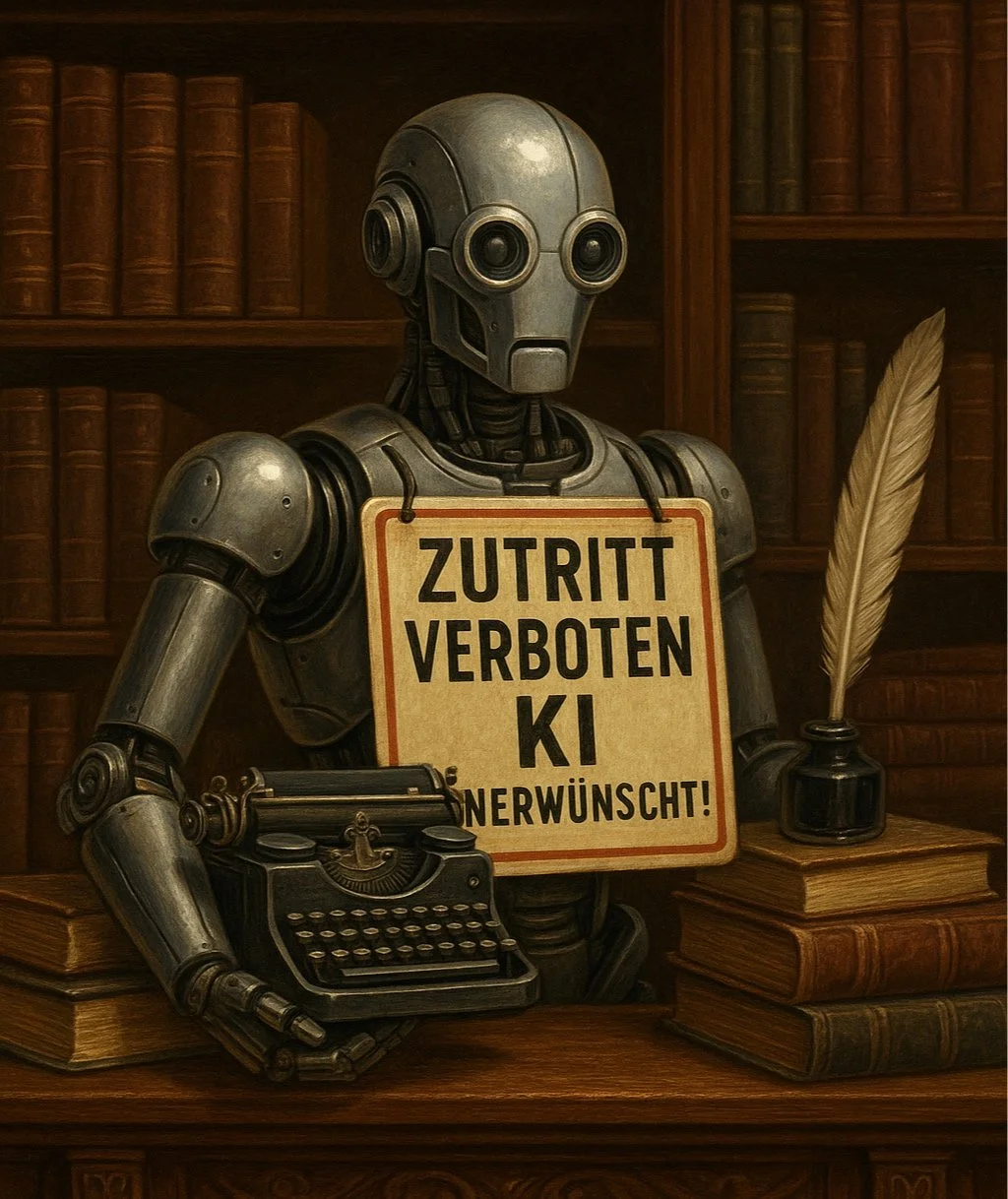 Neulich beim Check meiner Exposé-Mailings an diverse Verlage: Da steht es schwarz auf weiß in den Einreichungsrichtlinien. Sätze wie: „Manuskripte, die ganz oder teilweise mit KI erstellt wurden, werden nicht berücksichtigt.“ Und ich musste lachen. Laut und lang. So eine Mischung aus Sarkasmus, Frust und Fassungslosigkeit. Und dann war ich wütend. Denn was hier passiert, ist nichts weniger als ein Lehrstück deutscher Innovationsfeindlichkeit.