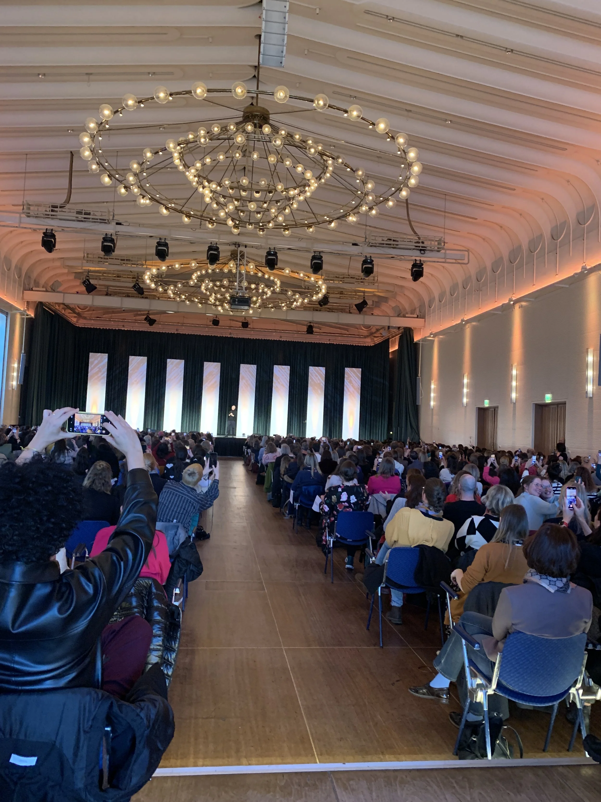 Was mir auch auffiel: Liz Gilbert bewegte sich nicht. Sie stand auf der Bühne wie ein Fels in der Brandung. Lediglich mit ihren Händen und Armen gestikulierte sie. Aber ihre Beine bewegten sich keinen Millimeter. Auch das wirkte unglaublich souverän. Mir fiel das vor allem deshalb auf, weil ich, wenn ich Vorträge halte, oft viel zu sehr rumzappele, rumlaufe, nicht auf der Stelle stehen bleiben kann. Notiz an mich: Ab sofort bleibst du stehen. Das habe ich direkt bei meinem nächsten Vortrag danach ausprobiert. Und in der Tat war ich viel fokussierter, klarer und konzentrierter.