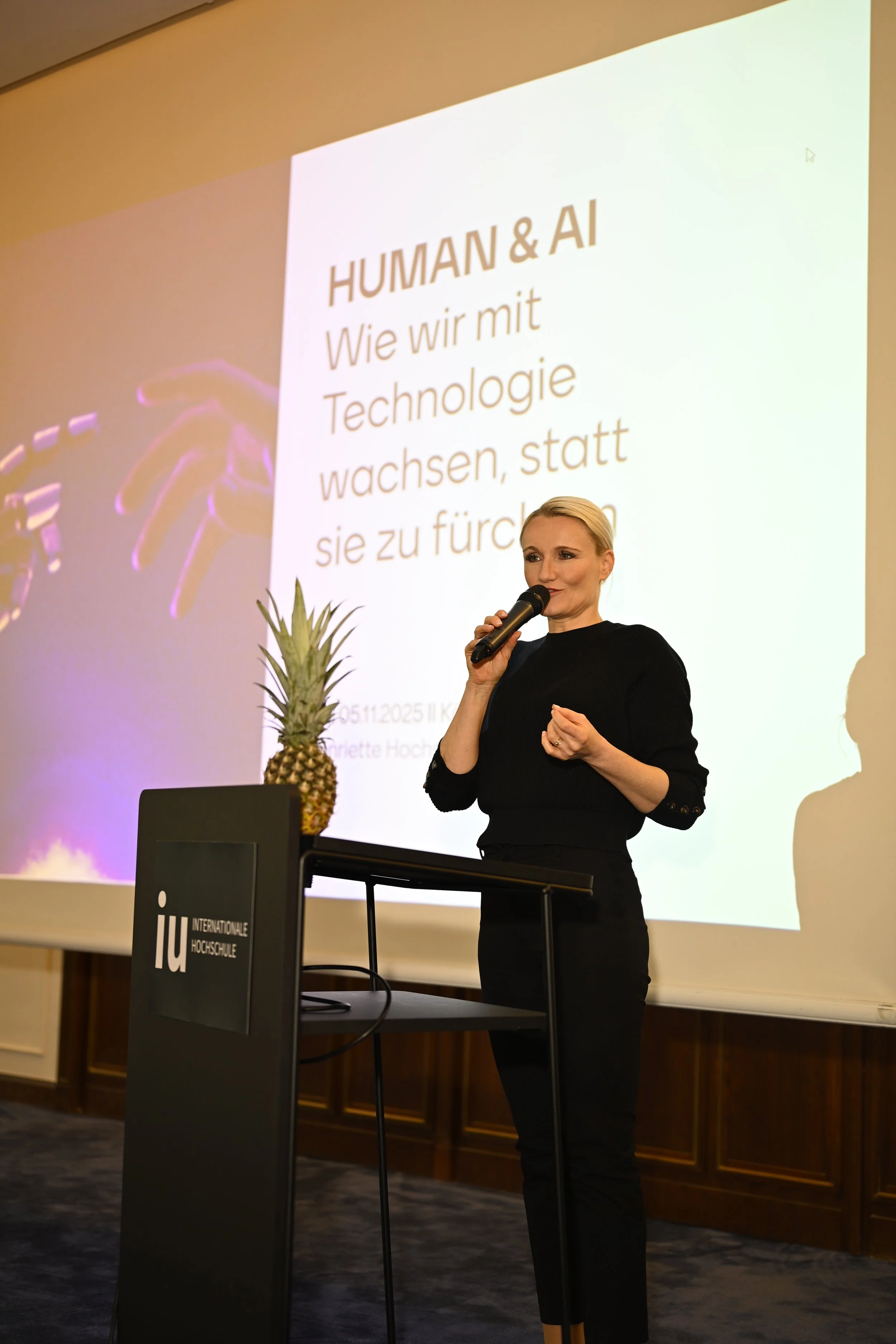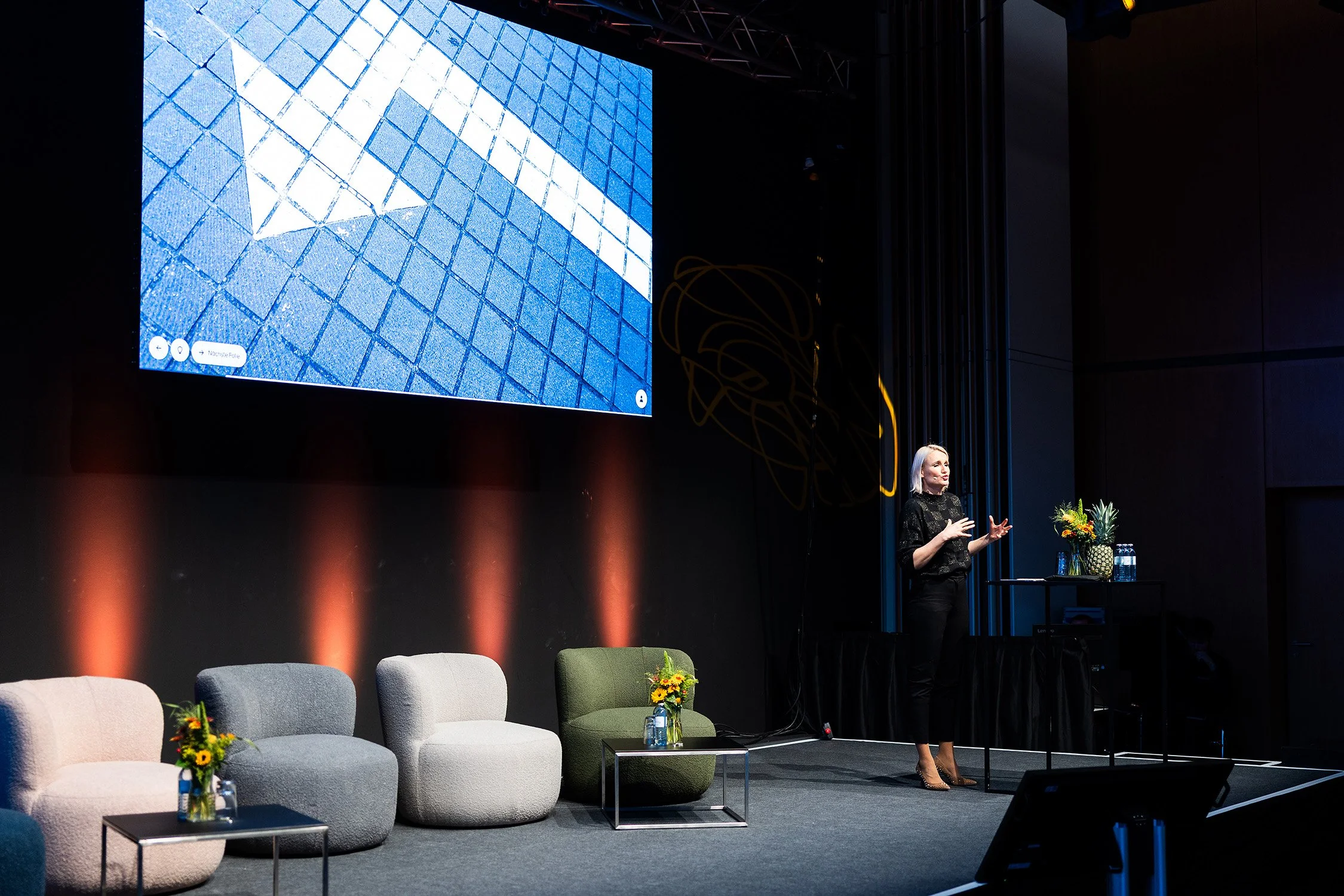 Moderatorin: Führt souverän durch komplexe Themen und echte Gespräche. Bringt jede Bühne und jedes Event zum Strahlen.